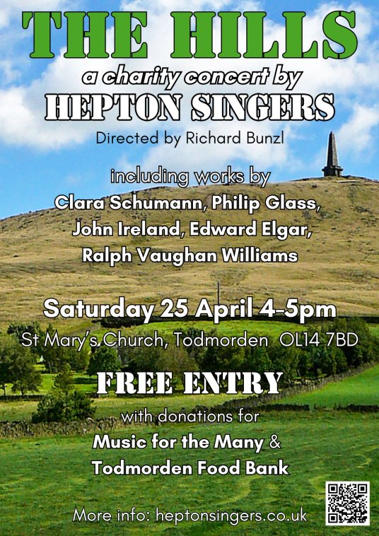 Hepton Singers is based in Hebden Bridge, West Yorkshire. The choir performs varied programmes of mainly a capella music from the 16th Century to the present day and has a strong local following, performing regularly in Heptonstall Parish Church as well as other venues across the north of England. The choir’s Musical Director is Dr Richard Bunzl.